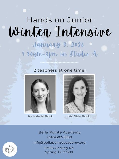 Hands On Junior Winter Intensive with 2 teachers at Once! Saturday Jan 3rd. Includes ballet, pointe, variations and Reformer/chair Pilates!! At a incredible value, No registration fee, no audition fee.