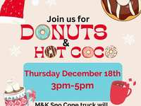 Join us on 12/18 from 3pm–5 PM for warm hot cocoa and donuts.