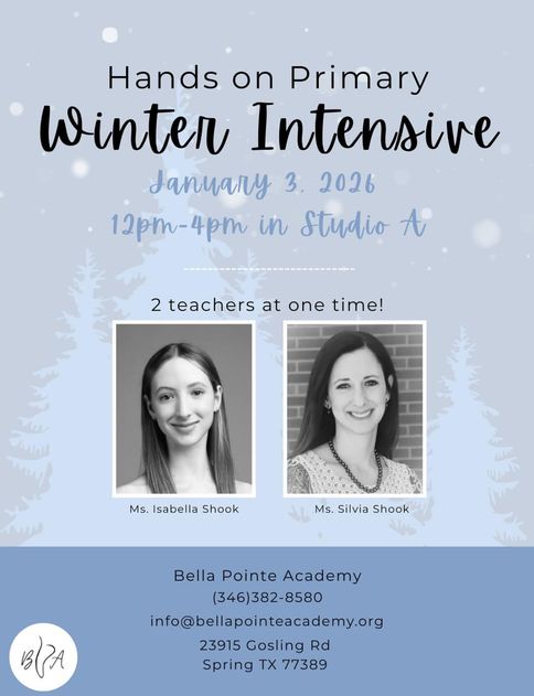 Hands On Primary Winter Intensive with 2 teachers at Once! Saturday Jan 3rd. At a incredible value, No registration fee, no audition fee.