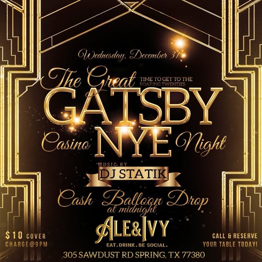 Ring in the New Year in unforgettable fashion at Ale & Ivy’s Great Gatsby–themed New Year’s Eve Party, where vintage glamour meets high-energy nightlife. Dust off your Roaring 20s attire and step into a night of luxury, excitement, and celebration inspired by the elegance of the Jazz Age. This exclusive New Year’s Eve event promises nonstop entertainment, dazzling style, and an atmosphere designed to make your countdown to midnight truly spectacular.