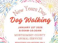 Start the New Year by making a difference for shelter dogs! Join us at Montgomery County Animal Services on January 1st from 8:00 AM to 10:30 AM and help our dogs kick off the year with fresh air, exercise, and extra attention.