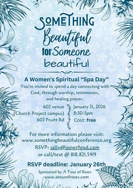 Something Beautiful for Someone Beautiful is a non-denominational Christian Women's Conference designed to encourage women to rest and soak in the presence of God... You're invited to spend a day reconnecting with God, through worship, testimonies, and healing prayers. Lunch is included, and the entire event is free.