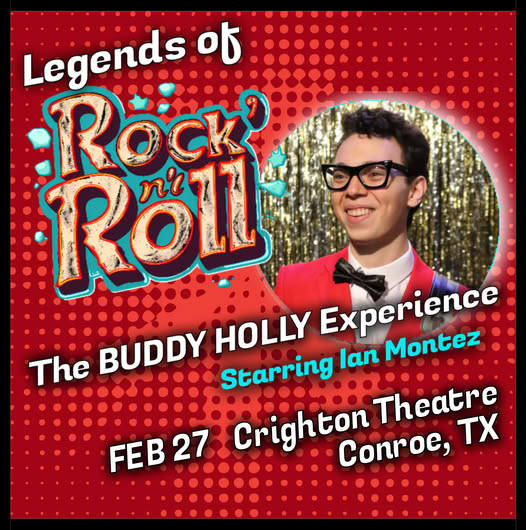Get ready for an unforgettable night of classic rock and roll as the legendary music of Buddy Holly comes alive at the Creighton Theatre in Conroe, Texas, on February 27.