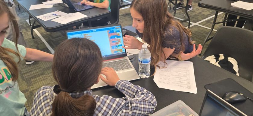 Example Challenge: "The Apple moves UP on the screen instead of falling DOWN at the Basket." Kids must understand the X & Y coordinate system to fix the negative values and make the apple fall correctly!