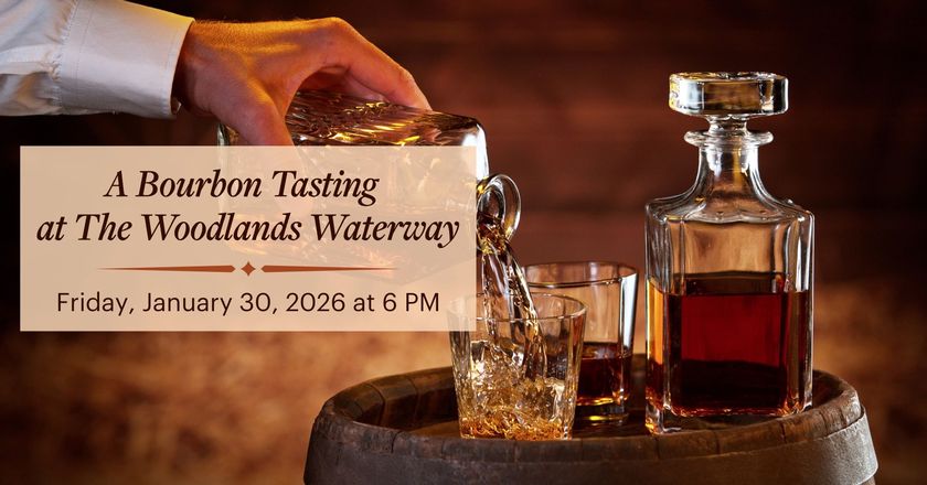 Experience a spirited evening at The Woodlands Waterway Marriott on Friday, January 30th, from 6–9 PM, where bold flavors and smooth pours take center stage. Bask in the inviting ambiance of an unforgettable tasting experience by reserving your table now.