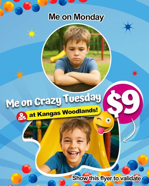 Every Tuesday from 3:00 PM to 6:00 PM, your kids play for just $9. The perfect plan to make your midweek extra fun.