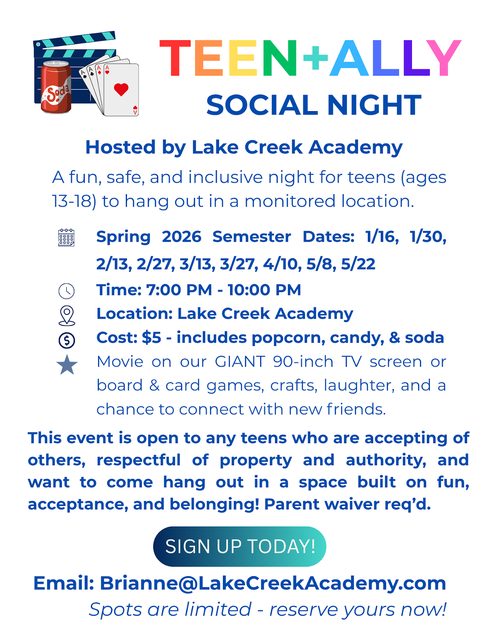 Join us for a fun, safe, and inclusive evening for teens (ages 13–18) to hang out in a supervised, welcoming space. This event is open to any teen who is respectful, accepting of others, and ready to enjoy an evening built on friendship, fun, and belonging.