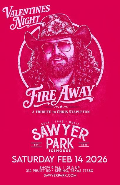 Celebrate Valentine’s Night 2026 with an unforgettable live country music experience at Sawyer Park Icehouse featuring Fire Away – the ultimate Chris Stapleton tribute band. This Valentine’s Day concert is the perfect destination for couples, singles, and country music fans looking for a high-energy live show, top-shelf whiskey, and authentic Southern vibes.