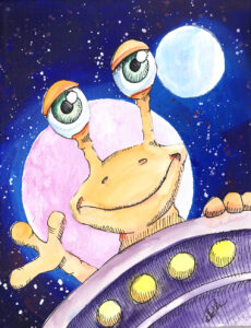 What happens when extraterrestrial friends get a break from work or school? In Aliens on Vacation, you'll explore the hottest tourist spots in the universe! Sit back, relax, and set your spaceship to cruise control as you tour colorful galaxies and sunny cosmic beaches, and have out-of-this-world sightseeing adventures. You'll design quirky aliens with big personalities, gather out-of-this-world souvenirs, and design cosmic postcards. Everything goes in this highly imaginative camp from glow-in-the-dark paintings to wacky alien selfies. Keep an eye out…their spaceship might touch down on Earth! If you love humor, whimsy, and cosmic travelers, this camp is your ticket to a galactic getaway!