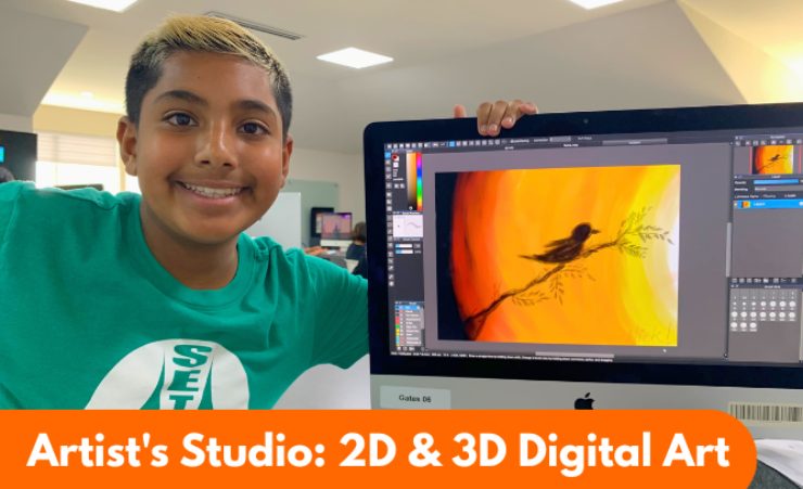 Campers will learn to express themselves utilizing the digital tools of the art industry. Various pieces will be created throughout the week which will then be shared, and discussed as a group, giving these artists the crucial experience of personal feedback. Some of the areas that each new artist will explore include: photo manipulation, digital painting, 3D sculpting, and programming art! Campers will create an art gallery-style presentation for audiences to experience and enjoy their projects.
