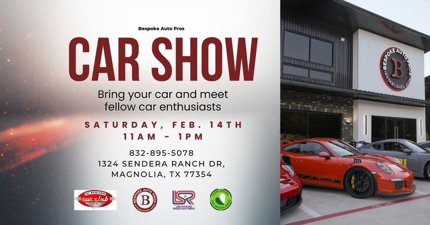 Join us at Bespoke Auto Pros on February 14, 2026 for our upcoming Car Show. Come check out an incredible lineup of cars, meet fellow enthusiasts, and hang out at the shop. All makes and models are welcome. We can’t wait to see you there!
