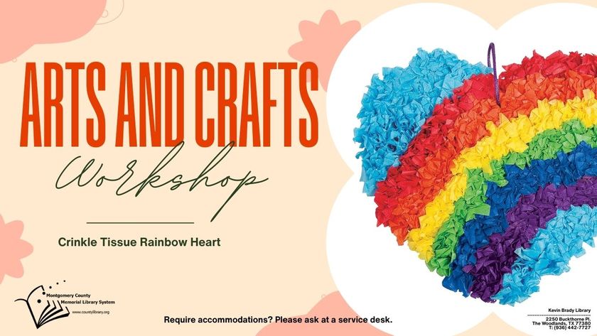 Get ready to get your hands colorful and creative with our fun Crinkle Tissue Rainbow Heart project. This is an in-person event where you'll learn to make a vibrant, textured heart using crinkled tissue paper. Perfect for all skill levels, come hand out, craft, and let your imagination run wild!