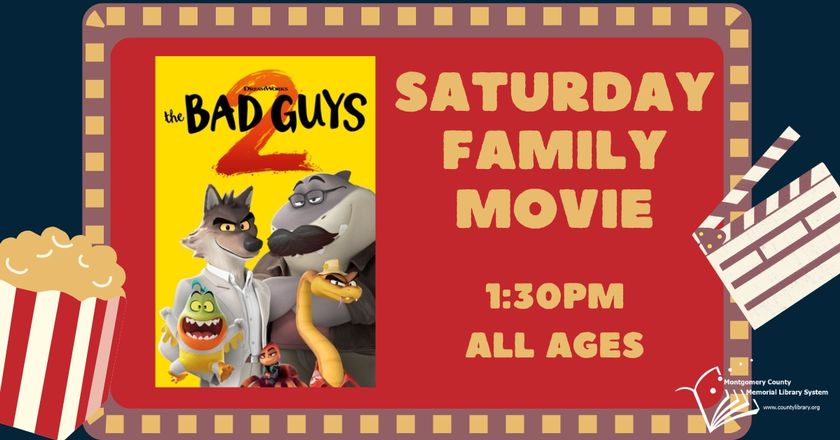 Join us at the Mitchell Library on Saturday afternoons for a fun family movie! The movie starts at 1:30pm in the Large Meeting Room.