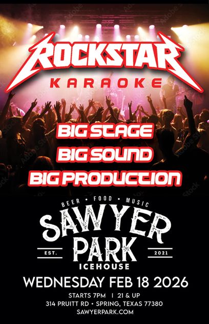 Rock Star Karaoke takes over Sawyer Park Icehouse on Wednesday, Feb. 18 at 7PM for a high-energy live entertainment experience you won’t want to miss. Step onto a full-scale professional stage with concert-quality sound, lighting, and production that makes you feel like a true rock star. This free karaoke night is 21 and up, featuring a big stage, big sound, and big production in one of the area’s top live music venues. Gather your friends and sing your heart out at the ultimate karaoke event in Sawyer Park.