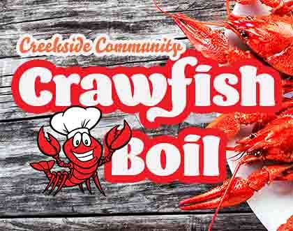 Covenant Church at Creekside invites the community to its annual Creekside Crawfish Boil on Saturday, March 28, from 4:00 – 7:00 p.m. at Wendtwoods Park.