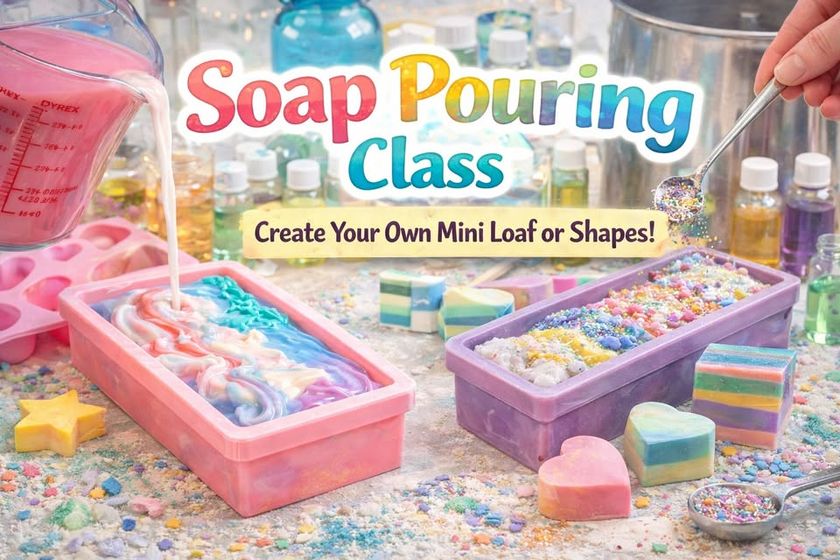 In this class you’ll pour a mini loaf/shape set and create your own custom soap.