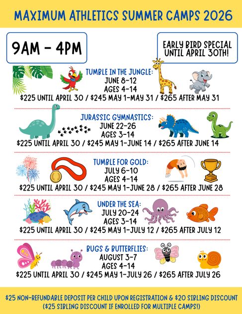 At Maximum Athletics in The Woodlands, Texas, our mission is to provide a top-rated summer camp experience that blends fitness, skill development, and confidence-building. Whether your child wants to master new gymnastics skills or simply burn off energy in a positive, encouraging environment, our experienced coaches provide the equipment, training, and support they need to succeed.