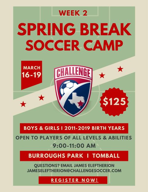 Join us over Spring Break for an unforgettable week of teamwork, skill building and of course lots of fun! The professional coaching staff have an action-packed week planned - the players will focus on individual fundamental skills (dribbling, ball mastery, passing/receiving, striking/finishing) as well as play fun, competitive small-sided games.