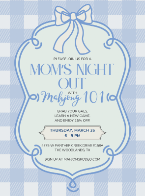 Join us for a Mom’s Night Out with Mahj 101 — a beginner-friendly class perfect for learning the basics of this fun, social game! Shop the adorable Teacups and Tadpoles and enjoy 15% off during the lesson!