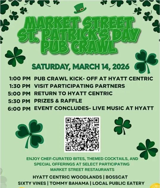 The celebration begins at Hyatt Centric The Woodlands at 1:00 PM, where participants will receive an official Bingo Card and a commemorative pint glass. From there, stroll through participating Market Street restaurants, enjoying festive flavors and lively atmosphere along the way.