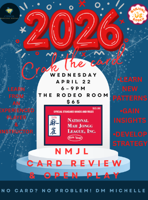 You’ll learn from a seasoned mahjong pro all of her own tips and tricks on how to excel at learning a new card. Then, we’ll transition into open play so you can practice what you’ve learned and start getting comfortable with the new card.