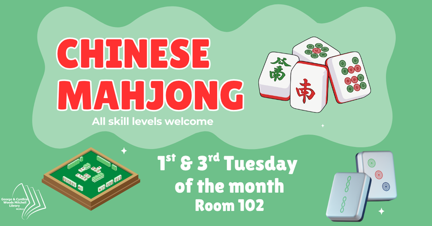 Let's Play Mahjong! Join us for an afternoon of this popular tile game every 1st and 3rd Tuesday of the month. Don't worry if you don't know how to play; we will teach you!