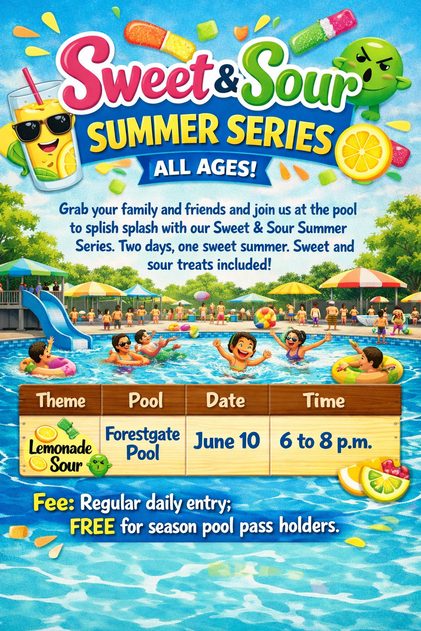 Grab your family and friends and join us at the pool to splish splash with our Sweet & Sour Summer Series. Two days, one sweet summer. Sweet and