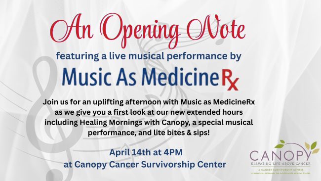 April 14th at 4PM at Canopy Cancer Survivorship Center