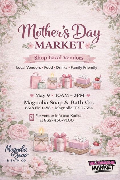 Join us for a special Mother’s Day Market at Magnolia Soap & Bath Co. featuring local vendors, sweet treats, and a full day of shopping + experiences designed to celebrate moms