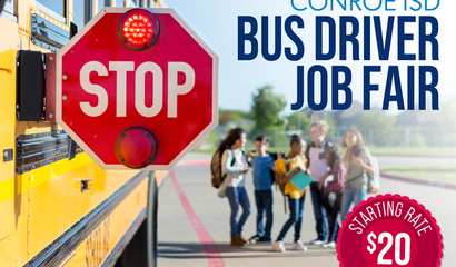Conroe ISD will be hosting a Bus Driver Job Fair Wednesday, April 29, from 10 a.m. to noon at the Walter P. Jett Teacher Training Center. The Jett Center is on the north end of Woodforest Bank Sta...