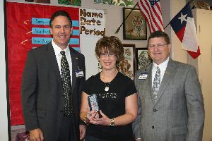 montgomery County, TX -- Conroe Independent School District Trustee Mr. John Husbands and Superintendent Dr. Don Stockton visited several campuses on Friday, October 12, 2007 to award an outstanding teacher, student, and paraprofessional from each campus with the prestigious Ambassador Award. The honor is bestowed only once a year on each campus. The recipients are chosen because they exemplify outstanding character and integrity and are committed to excellence. The recipients are paid a surprise visit when the award is announced and presented to them. CISD Board of Trustees will take turns each month until all fifty campuses are visited once each school year to announce the award winners.