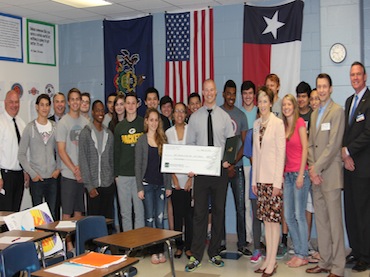John Owens, Economics teacher, was awarded a resolution along with the check by representatives of IBAT on Monday, May 12, while teaching a class. In addition, Mr. Ray Sanders, Woodforest Bank President presented Mr. Owens with a $500 check from Woodforest Bank.