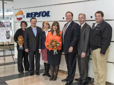 Pictured from left to right in photo: Lorrie Parise, Marketing Manager, TWDC; Nick Wolda, President, The Woodlands Convention & Visitors Bureau and Director of Community Relations, The Woodlands Township; Jan Sieving, VP Public Affairs, Repsol; Kimberly Berriochoa, Community Affairs, Repsol; Bruce Tough, Chairman of The Woodlands Township; Tim Welbes, Co-President, TWDC; and Joel Dodd, Branch Manager, The Brickman Group, Ltd.