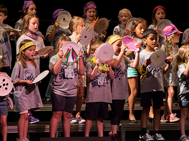 The showcase performance held on the last day of camp invited family and friends to cheer on their excited campers. With performances including mash-ups and props, the campers’ favorite part was the “Concert Etiquette Rap,” a rap-inspired song and dance created to teach students proper concert etiquette. Campers learned this song earlier in the week and were encouraged to show their parents at home before their final concert to also familiarize them with concert etiquette.