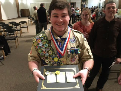 THE WOODLANDS, Texas - What better way to celebrate Boy Scout Day on Monday, February 8, than to honor one of your own who has reached the pinnacle of achievement established by the organization. Austin Henao, an Eagle Scout from The Woodlands Troop 777, completed the requirements for his final merit badges, and was awarded the badges, certificates, and other accolades in a special Court of Honor ceremony at Trinity Episcopal Church in The Woodlands, where the troop is based.