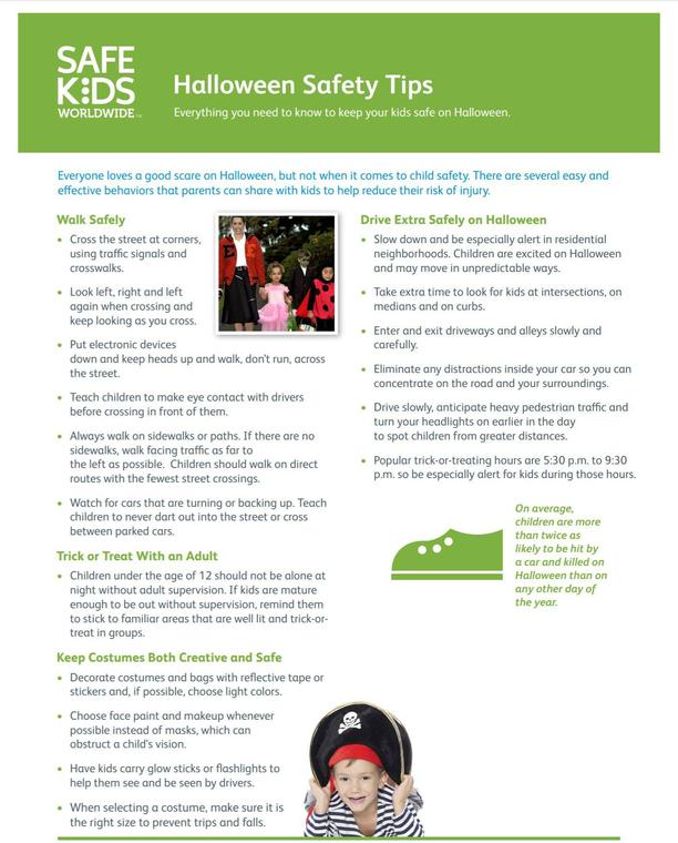 *Parents, make sure kids are equipped with flashlights, reflective gear, and/or glow sticks. Visibility is our friend!