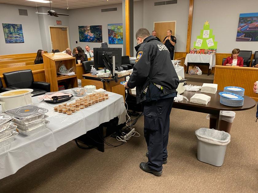 MONTGOMERY COUNTY, TX -- On December 3, 2021, the Montgomery County Sheriff's Office Courts Division, held their annual, “Breakfast with the Bailiffs.” The breakfast invitation was extended to all courthouse staff, District and County Attorney’s Office Staff, as well as Bar Association lawyers. This year, everyone enjoyed breakfast tacos provided by Torchy’s Tacos! We would like to extend a special thanks to Judge Kristin Bays of the 284th District Court and her staff for allowing us the use of their courtroom. The Bailiffs would like to thank everyone who attended.