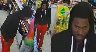 The male is described as a black male, about 5’ 9”, and was wearing a black hooded jacket, red jogging pants, and black and white Nike sandals at the time of the theft.