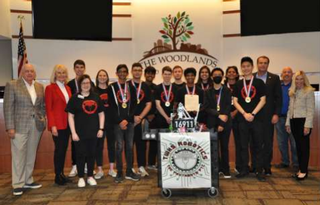 PHOTO: The Woodlands Township Board of Directors recognized The Woodlands Christian Academy's Literary Criticism and Art State Champions with a proclamation. Pictured above, left to right, Township Director Bruce Rieser, Head of The Woodlands Christian Academy Julie Ambler, Township Director Dr. Shelly Sekula-Gibbs, Literary Criticism State Champion Illiana McIntyre, Art State Champion Riley Bunch, Township Chairman Gordy Bunch, Township Directors Dr. Ann K. Snyder and John Anthony Brown, The Woodlands Christian Academy teachers Heidi Saenz, Renee Crawford and Principal Stephen Clark.