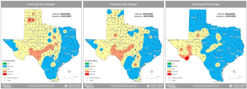 June 24th marks the traditional start to the July 4th fireworks season, and while there have been a few small wildfires this week in Montgomery County, much of Southeast Texas remains classified as abnormally dry. Montgomery County Fire Officials continue to monitor drought conditions and wildfire risk on a daily basis. Our average Keetch Byram Drought Index (KBDI) reached 600 as of today, a level that indicates the area would need 6” of rainfall to be fully saturated. KBDI is measured on a scale of 1(fully saturated) to 800 (completely dry).