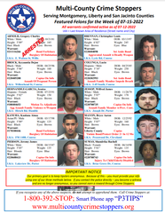 MONTGOMERY COUNTY, TX -- Serving Montgomery, Liberty and San Jacinto Counties. Featured Felons for the Week of 7-15-2022. All warrants confirmed active as of 07-12-2022