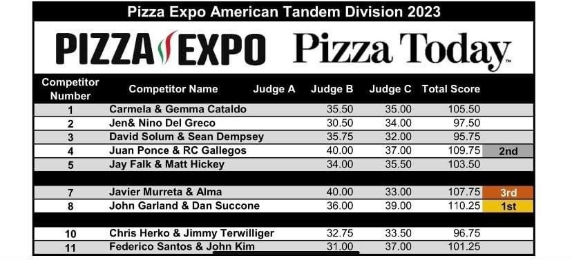 RC’S NYC Pizza & Pasta won 2nd place in the Traditional Pizza Competition in the Southwest Region. Juan Ponce won 2nd place with his pepperoni pizza. RC Gallegos & Juan Ponce together competed in the Tandem Team Competition, American Division and won 2nd Place, achieving one of the two perfect 40 scores by one of the three judges.