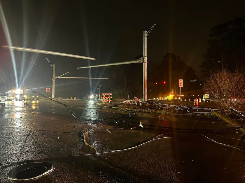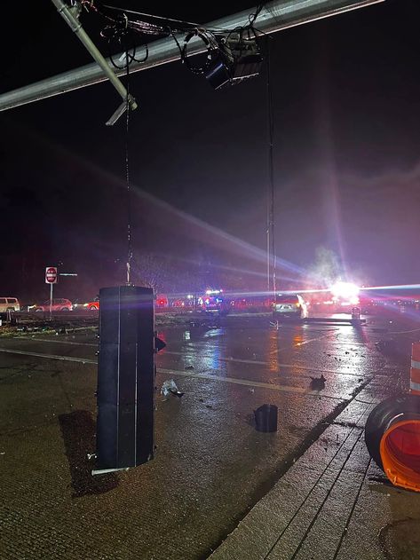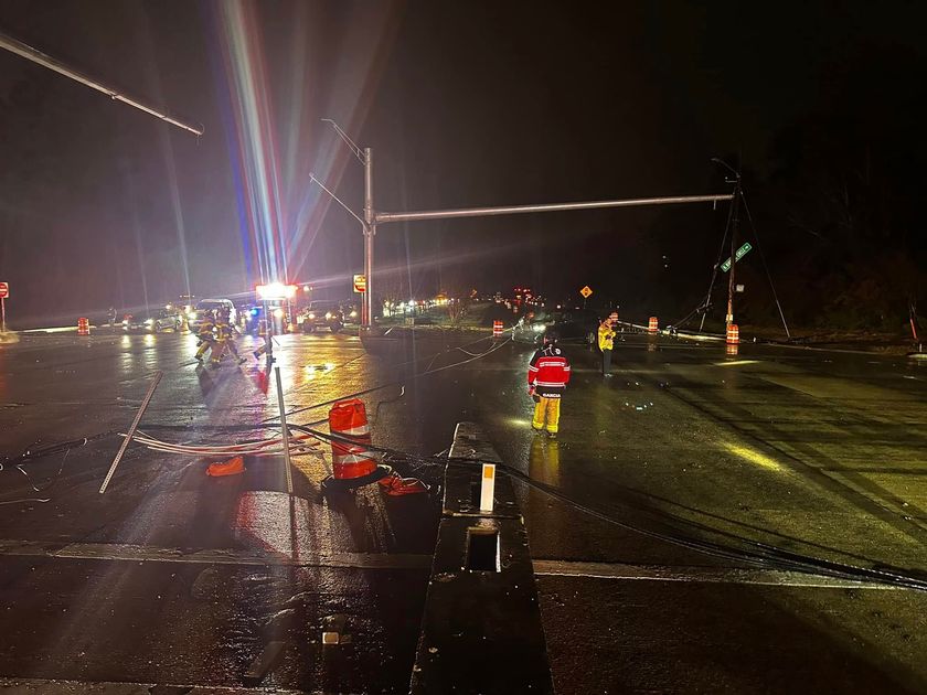 Upon arrival, emergency responders found two vehicles trapped beneath downed utility lines. Multiple utility poles had snapped, and all temporary traffic signals in the intersection—where ongoing road construction is taking place—were also down. Firefighters worked diligently to cut several wires, ensuring safe access to the vehicles and successfully removing the occupants.
