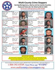 MONTGOMERY COUNTY, TX -- Serving Montgomery, Liberty and San Jacinto Counties. Featured Felons for the Week of 03-21-2025. All warrants confirmed active as of 03-19-2025.