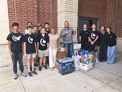 Students from TWCP Cavalier Robotics (FRC 1477 Texas Torque and FRC 7492 Turbo Torque) organize a bedding drive to support Angel Reach