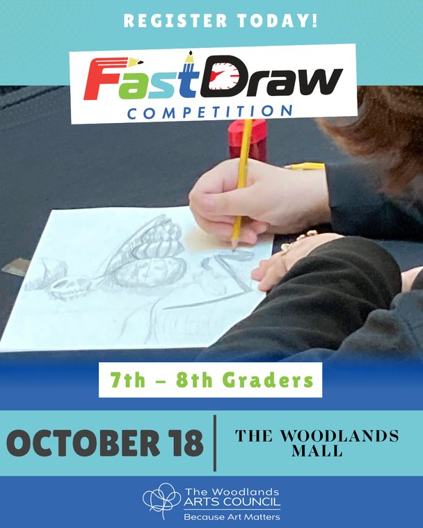 THE WOODLANDS, TX – Seventh and eighth grade students from throughout The Woodlands area are invited to register for and participate in The Woodlands Arts Council’s annual Fast Draw competition event.