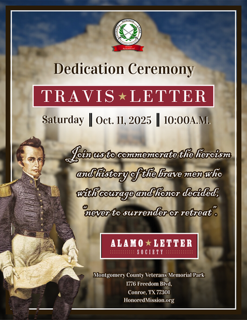 “In conjunction with the Alamo Letter Society, a monument commemorating the famous ‘Victory or Death’ letter written by the Alamo Commander, Lieutenant Colonel William Barret Travis, will be displayed for all to see and remember the brave men that made a turning point in Texas history,” said the commission’s executive director, Elizabeth Woods.