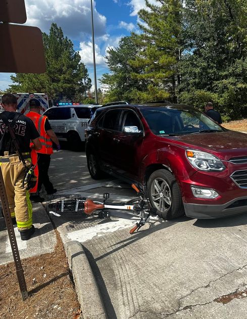 THE WOODLANDS, TX -- At approximately 2:00 p.m. on Wednesday afternoon, The Woodlands Fire Department Engine 104 and the Montgomery County Hospital District (MCHD) responded to reports of an auto versus bicycle collision on Kuykendahl Road near the Indian Springs Village Center.