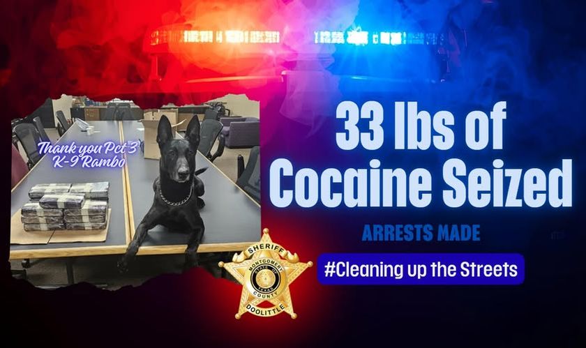 The Montgomery County Sheriff's Office expresses its sincere appreciation to the Montgomery County Precinct 3 Constable's Office and K-9 Rambo for their invaluable support in this investigation and their role in locating the contraband.