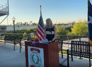 Jason Smith, Deputy Chief of Staff to County Judge Mark Keough, led the group in the invocation, while Cindy Heiser, The Woodlands Township Director, led the group in pledges to The US and Texas Flags.